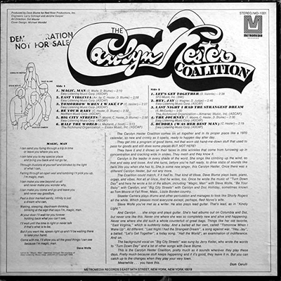 Returned to solo work, with another Carolyn Hester album in 1973.